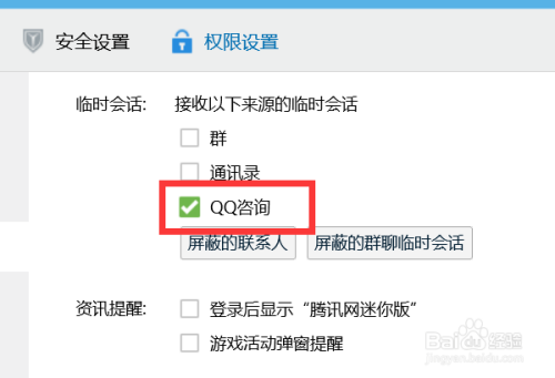 点击【QQ咨询】,如图,框框是绿色的,则暗示我们开启了QQ咨询姑且会话功效哦~