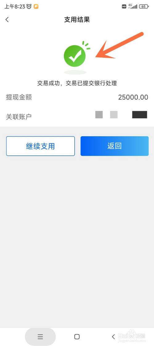 点击确认后,页面会显示生意业务乐成提醒,即暗示贷条目已经支取乐成。