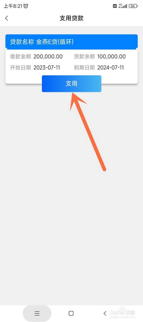 在支用贷条目页面,会显示当前贷条目信息,点击下方的支用。