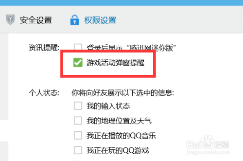 点击【游戏运动弹窗提示】,如图,框框是绿色的,则暗示我们开启了该弹窗提示哦~