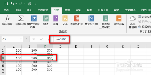 然后删除C3单位格中的公式,从头进入新公式=A3+B3,点击回车。