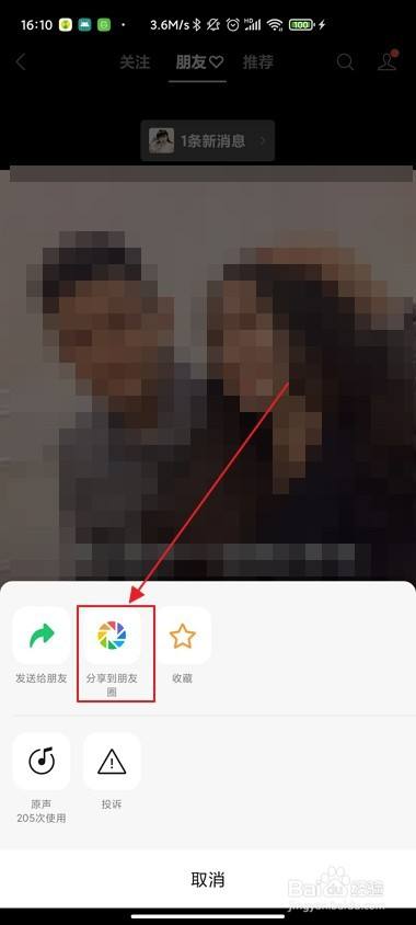 点击之后,在底部弹出的对话框中点击【分享到朋友圈】。