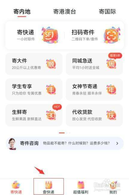 进入顺丰小程序首页,点击查快递。