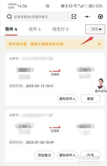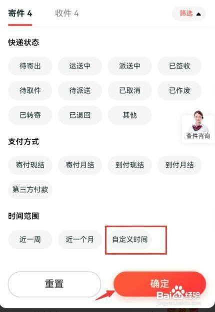 选择寄件,点击筛选。