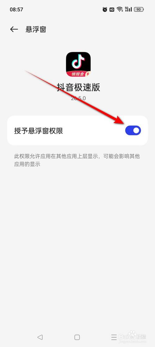 将“授予悬浮窗权限”旁的小滑块点亮。