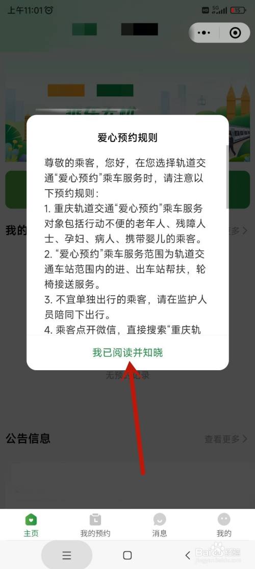 在爹躲弹出页面,阅读爱心预约法则,点击下方的我已阅读并知晓。