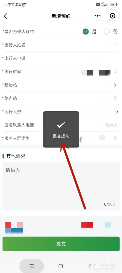 按照提醒,填写预约信息,点击下方的提交。