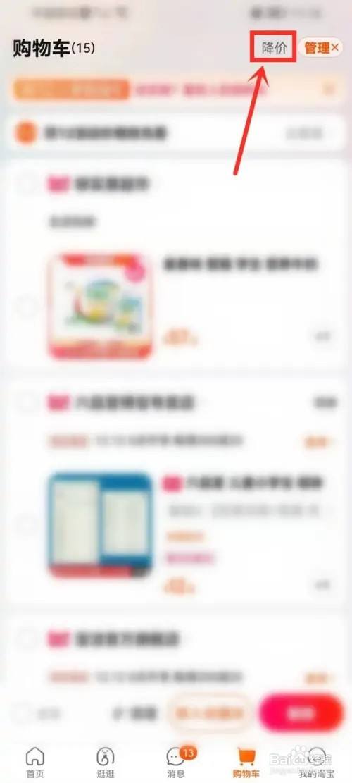 进入购物车界面,点击顶部【降价】。