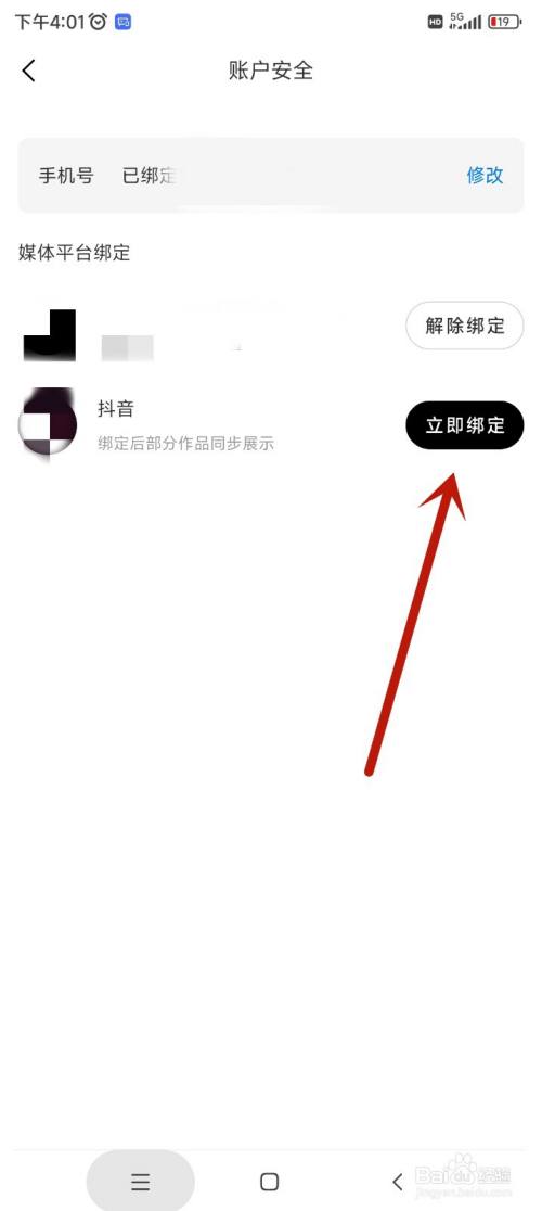 在账户安全中,找到抖音,点击右侧当即绑定。