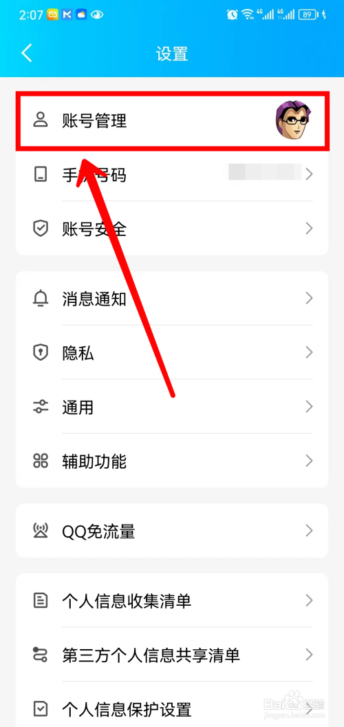 然后点击【账号办理】。