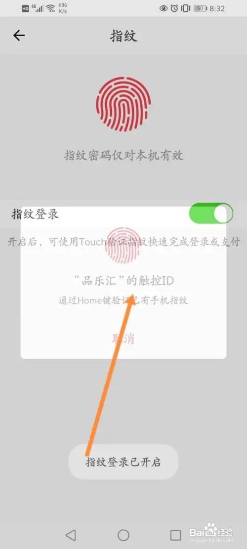 第六步,在弹出的面板中,举行指纹验证即可