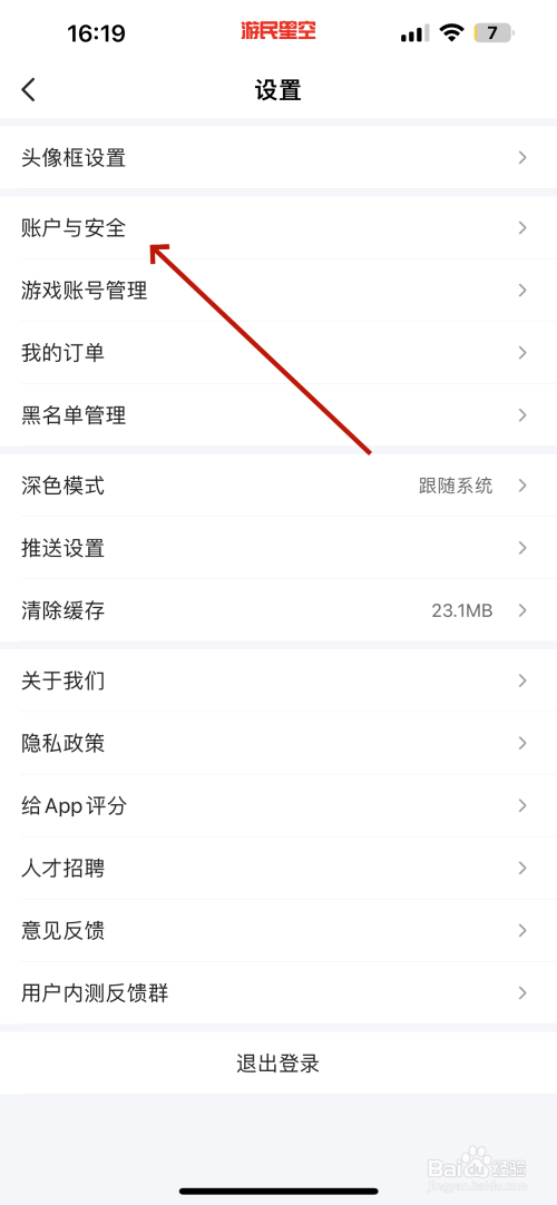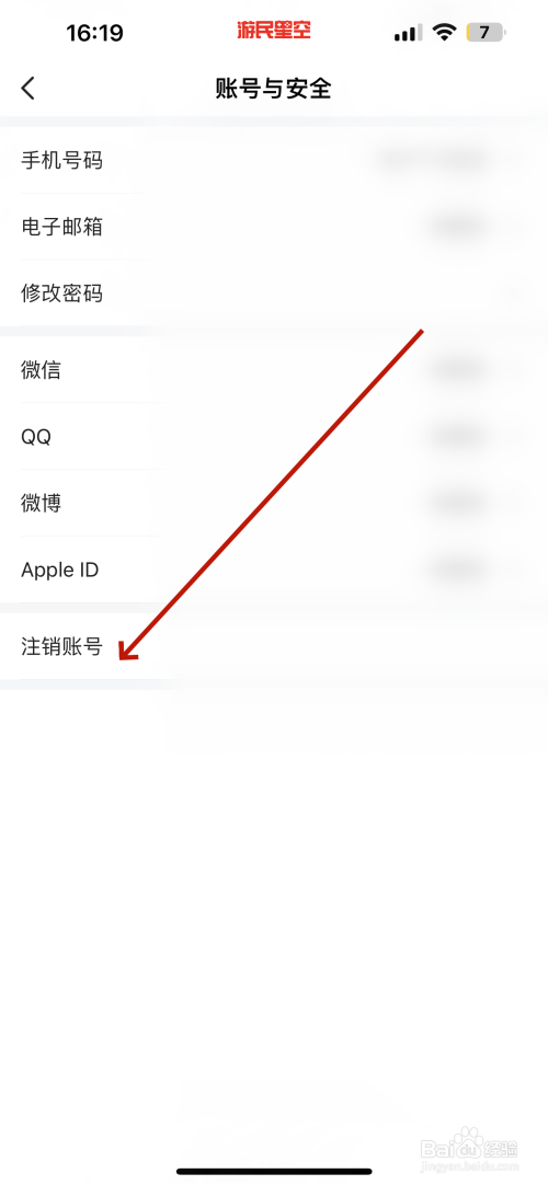 打开账号与安全的界面点击“刊出账号”选项,