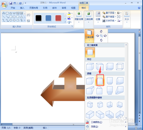我们就在word给丁字箭头添加上了红木渐变和三维效果。