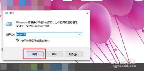 同时按【Win】+【R】键,打开运行,点击输入“regedit”,点击确定。