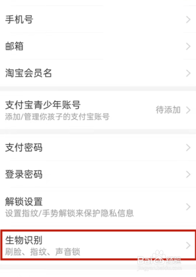点击生物辨认。