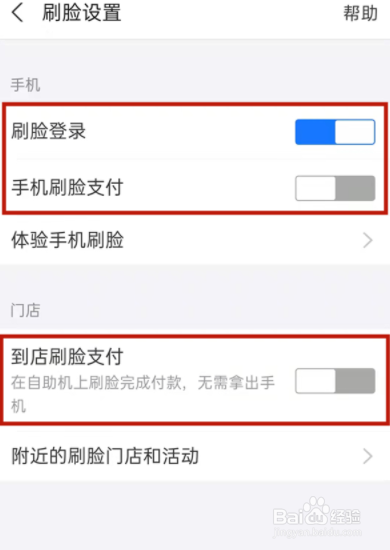 将刷脸设置右侧的按钮开启即可。