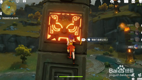 达到石柱的位置,爬上石柱之后,找到石柱上的互动点,选择【镶嵌“追叙之石”】,每个石柱还可以得到一个精致宝箱。