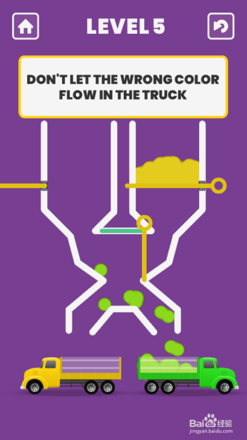 两辆卡车顺遂装满对应颜色的沙子,弹出笑貌画面,如图。这样就过关了。