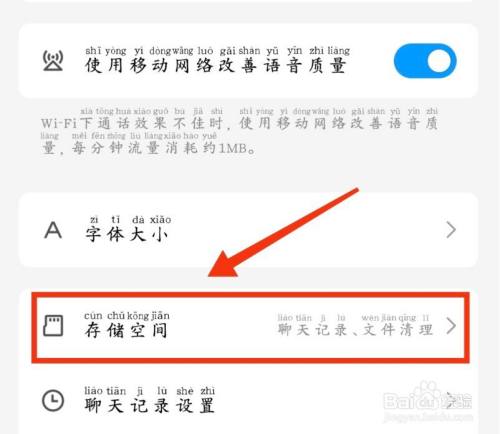 然后点击“存储空间”,如下图所示。