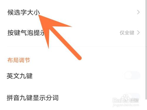 选择候选字巨细。