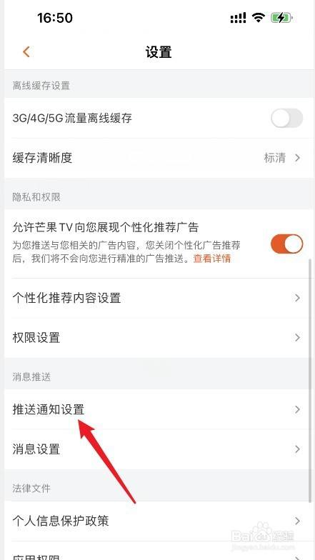 进入设置页面后,点击【推送通知设置】选项