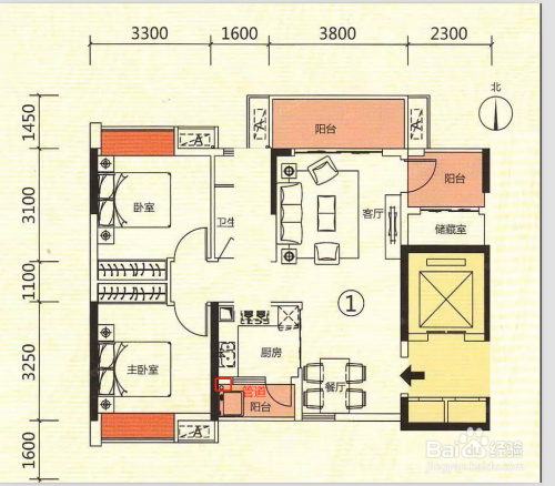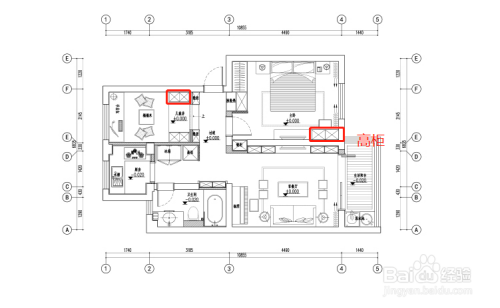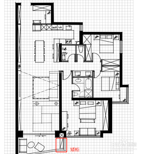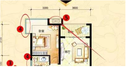卫生间、厨房、阳台在角落有圆圈的一般暗示管道。