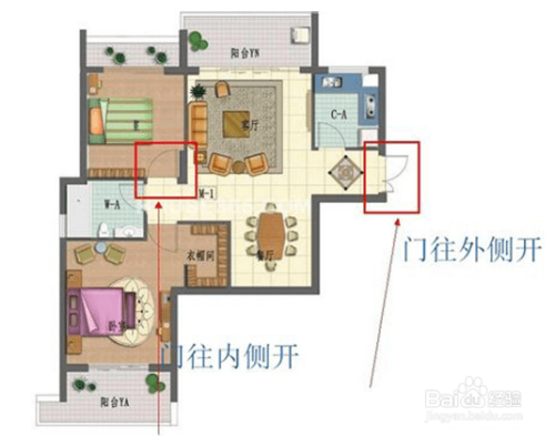 扇形代表门,标的目的房间外凸起是外开门,标的目的内凹是内开门。