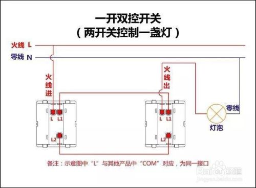 6、单开双控诉开关:这种开关在楼梯口和卧室最常用,就是任何一个开关都可以节制一盏灯的打开、封闭。很方便利用的,这种接线方式必然要进修,以后会常用到。
