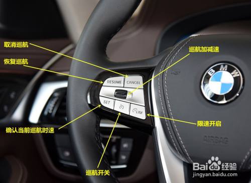 偏向盘上左边按键。别离是:巡航开关、确认当前巡航时速、恢复/取消巡航、巡航加减速、限速开启按键。