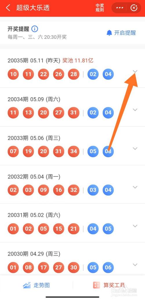 点击右侧(箭头)查看汗青开奖成果。