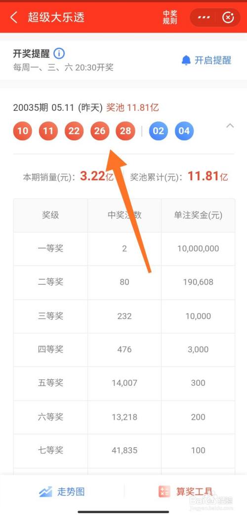 选择进入,可以看到最新开奖成果及本期中奖环境;
