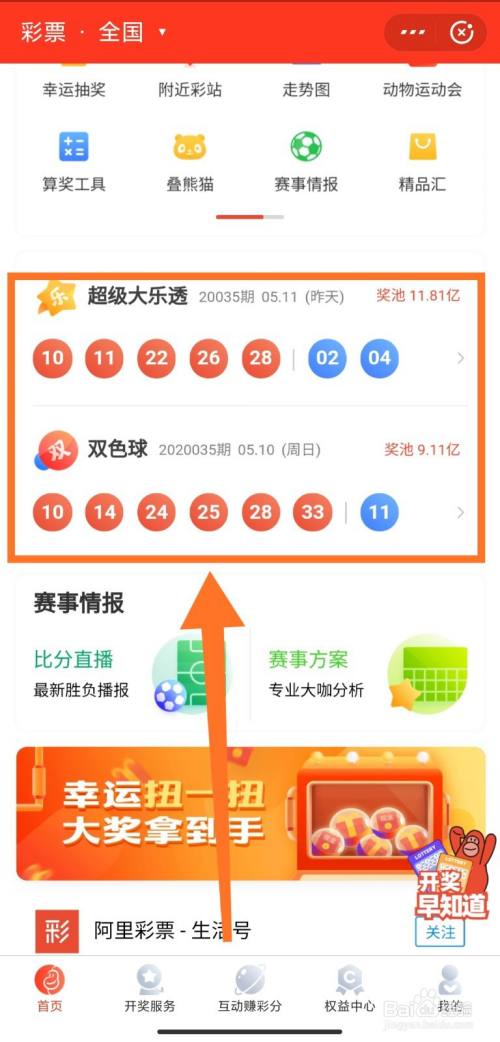进入彩票界面,可以看到大乐透、双色球的最新开奖成果;