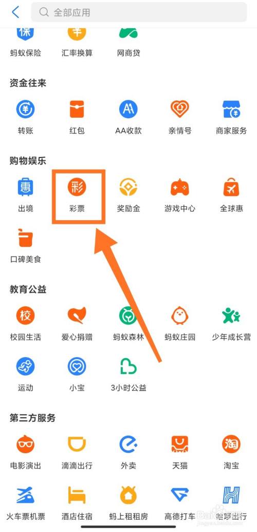 下拉界面在购物娱乐下找到彩票;