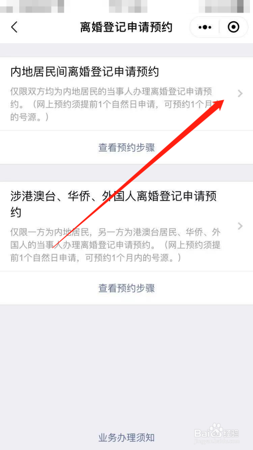 然后返回到预约办事,点击【仳离挂号预约】进入详情页