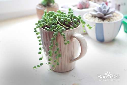 3.佛珠。又称珍珠吊兰,需风凉、干燥且整日照的情况生长,耐半阴,怕水涝,忌闷热湿润。