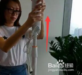 1、首先扭转风扇杆中心毗连处的旋钮,使之松开;