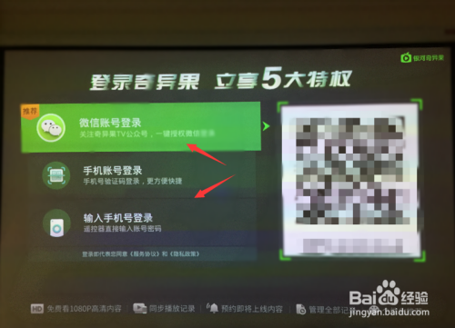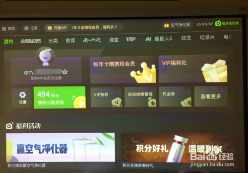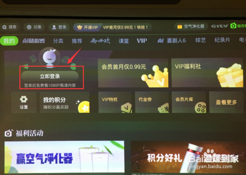首先,打开电视或者投影设备,进入“奇异果”app主页。
