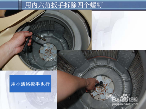 步调1:用小螺丝刀将波轮帽拔出,掏出波轮。