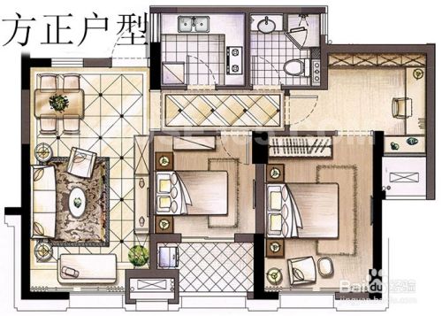 户型法则,最好是正方形。或者对称户型。理由有二:1,整理使用率高,现实生活面积大;2,风水好。(要是您不信风水可以纰漏第二条)。