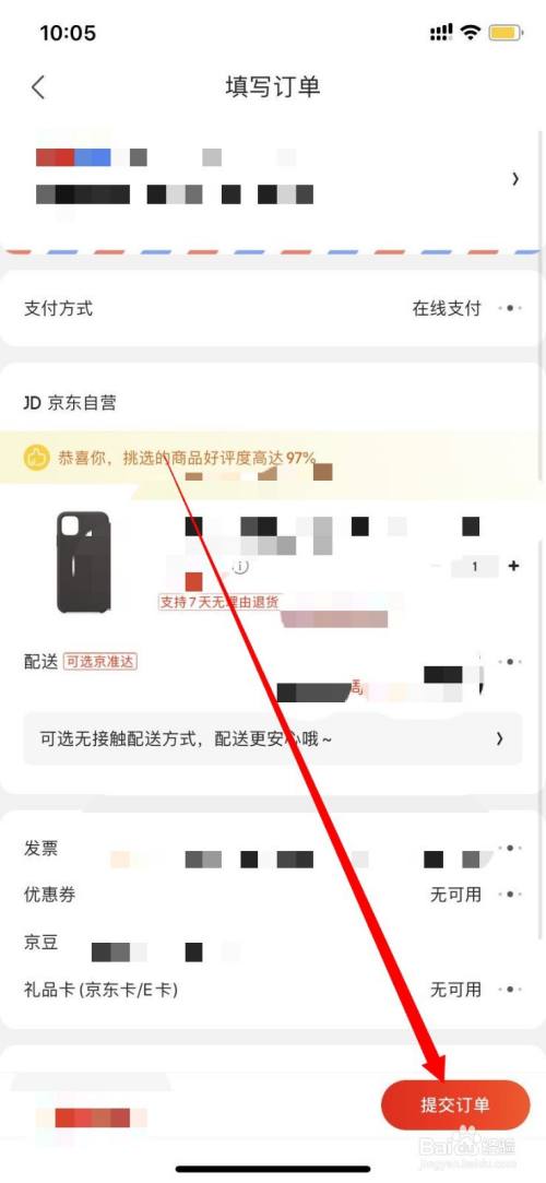 然落伍入“填写订单”页面,填写好信息后点击右小角“提交订单”。