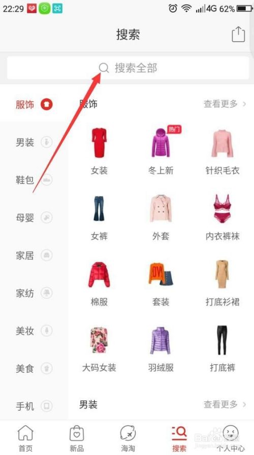 第一,手机上打开拼多多,点击底部的”搜刮“,在”搜刮全数”处点击。