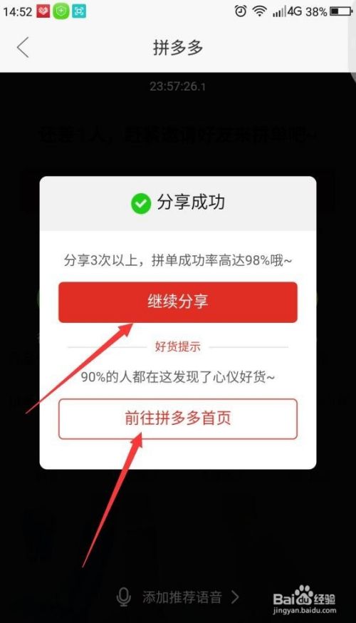 第八,选摘要邀请的摰友,点击“分享”,显示“已发送”。点击返回拼多多。显示分享乐成,可以再点击“继续分享”分享给其它摰友。一旦有人拼了单就OK了,就等候商家发货,收货了。