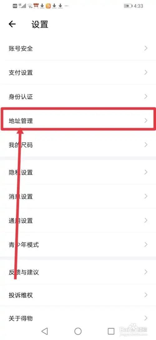 进入设置,点击【地址办理】。