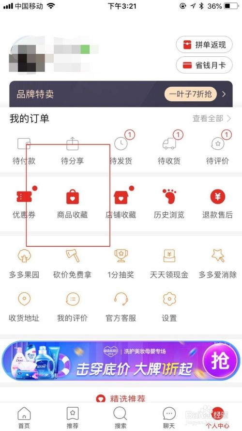 在个人中间,点击打开商品保藏。