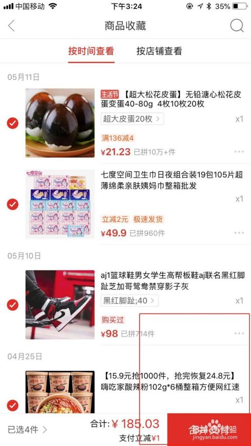 打开要采办的产物,下拉到底部点击保藏产物,将所有要归并付条目的产物都这样操作。