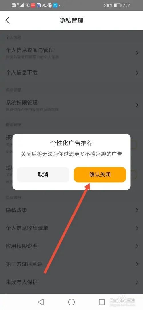 进入隐私办理,然后把【吸收个性化告白保举】的按钮封闭。