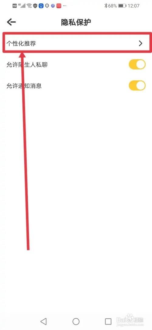 进入下面的页面,接下来把【个性化保举】的按钮封闭即可。