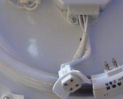 - 5拿出原先买来的好灯管,用卡簧卡本家儿 插上整流器的插头
