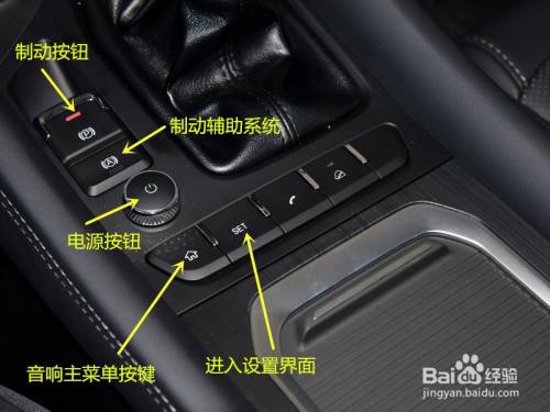 五、挡位底部按键。这里有制动按钮、电源按钮、音响本家儿菜单按钮等,已在图中标出。