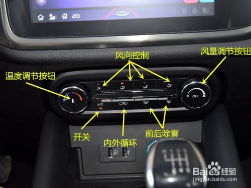别离是温度和风力调治按钮,风标的目的节制、除雾、表里轮回节制键。如图。
